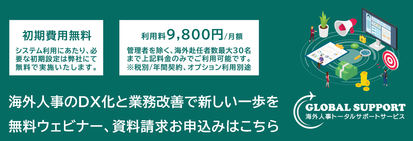企業のグローバル展開を支援するため、海外赴任規程策定のコンサルティングサービスを提供いたします。