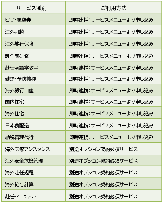 渡航前の予防接種からビザ、引越、海外の住居など海外赴任者が現地に着任するまでの手続き、業務は多岐に渡ります。赴任決定から帰国までの必要なサービスを網羅したプラットフォームが利用できます。